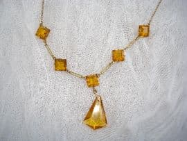 1930's Art Deco Yellow Glass Crystal Drop Necklace (Sorry this item is sold)
