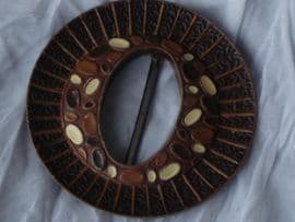 1940's Large Wooden Buckle with 4 Matching Buttons in Chocolate Colours
