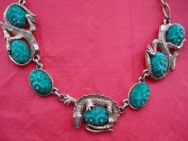 1950's/1960's Amazing Signed 'Exquisite' Necklace with Gilt Lizards and Faux Jade Gems (Sorry sold)