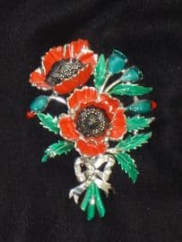 This is a cold enamel Poppy pin by Exquisite Jewellery Ltd., of Solihull, Warwickshire, England. It was one of their range of Birthday Flower Brooches introduced and extremely popular during the 1960's. These pins came in two sizes with a flower for every month of the year! The Company also had a range of Leaf pins and matching earrings, as well as many other lines in quality costume jewellery. The Poppy Brooch is the pin for August . It has a silvertone finish and the classic "bow" which is a feature of all these designer flower brooches. It is in good vintage condition. What a great gift for anyone who has an August Birthday or for someone named "Poppy" or just because you like it! Approximate measurements are 6.5cms (2.5ins) by 5cms (2ins). This item fastens with a rollover type clasp.