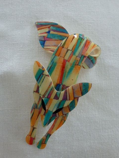 Kandinsky Style Brooch - Lea Stein of Paris Fox Pin with Abstract Effect (SOLD) (1)