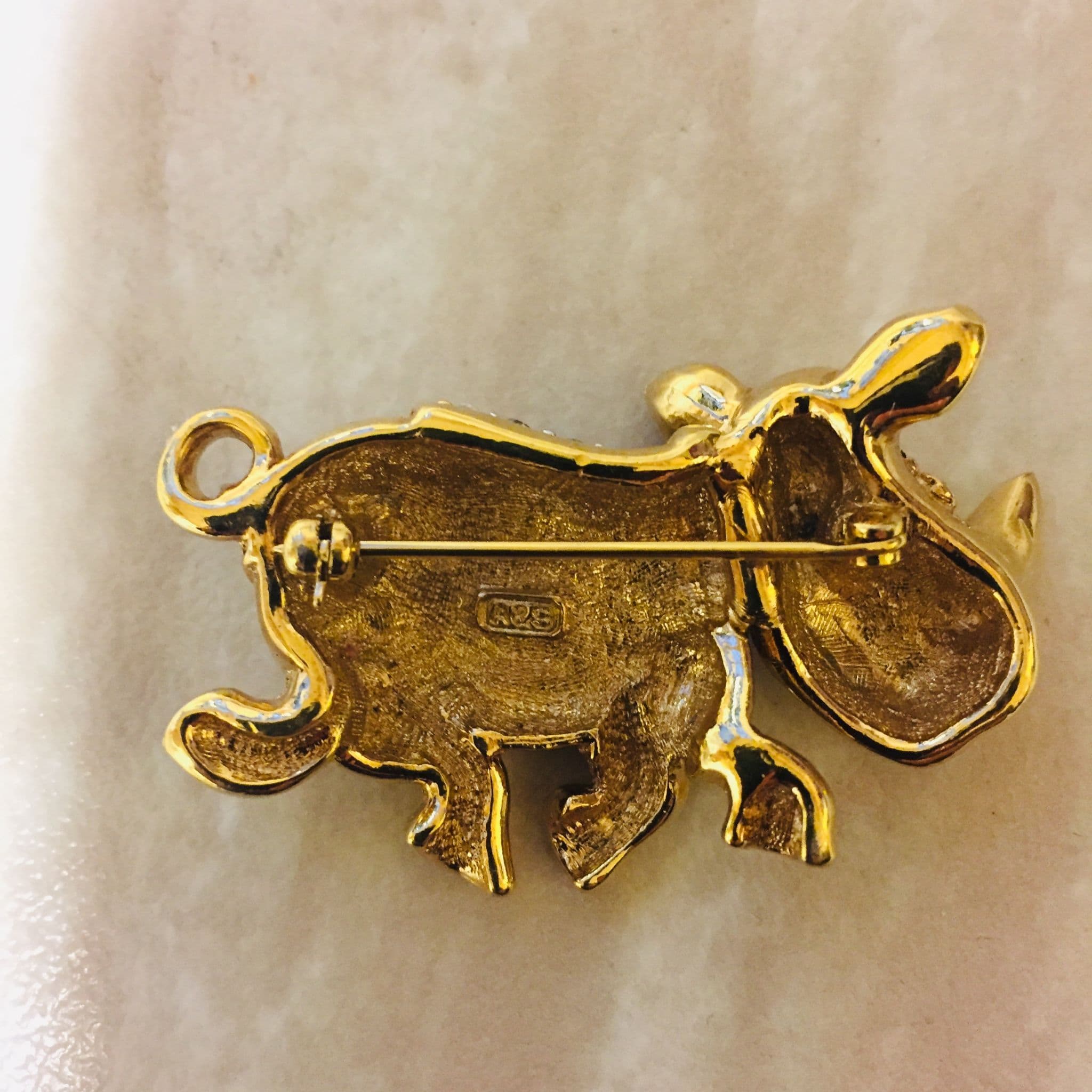 Sold Hippo Brooch signed "Attwood and Sawyer" - Gold Plated Hippopotamus Pin