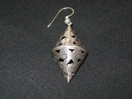 These gorgeous hand-made Mexican earrings are sterling silver and have many marks on them to indicate 925 for silver, Mexico for origin and the maker's mark 'MAR'. They were originally on a screw-type fitting but I have put them onto a brand new silver fishhook wire to make them suitable for pierced ears. They have been completely handcrafted with a cut out design and are very attractive. I would imagine they could date back to somewhere between the 1940' and the 1960's. Excluding the earwire they measure approx 4cms (just over 1.5 ins) in length and are about 2.5cms ( a bit under an inch) across the widest part.